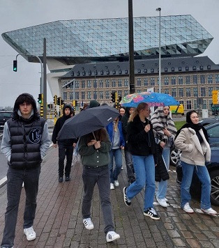 - Ce mercredi, visite du Musée Magritte à Bruxelles puis direction Anvers pour la visite des infrastructures portuaires. « L’impression d’être dans un roman de science fiction » d’après les élèves à la vue de la capitainerie. Superbe bâtiment néo-futuriste rénové par l’architecte iranienne Zaha Hadid.